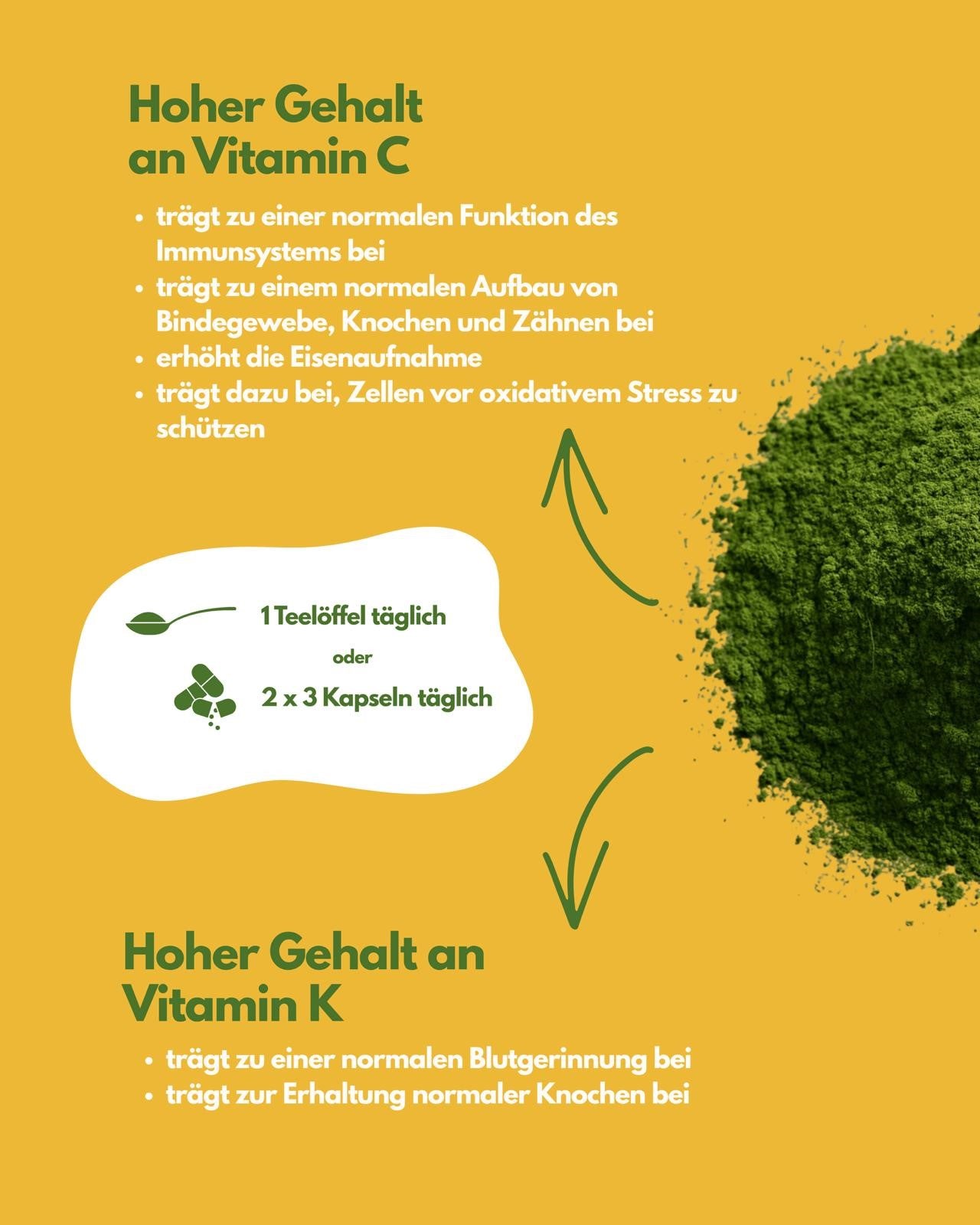- Reich an Vitaminen, Mineralstoffen, Pflanzenstoffen sowie Lutein und Zeaxanthin