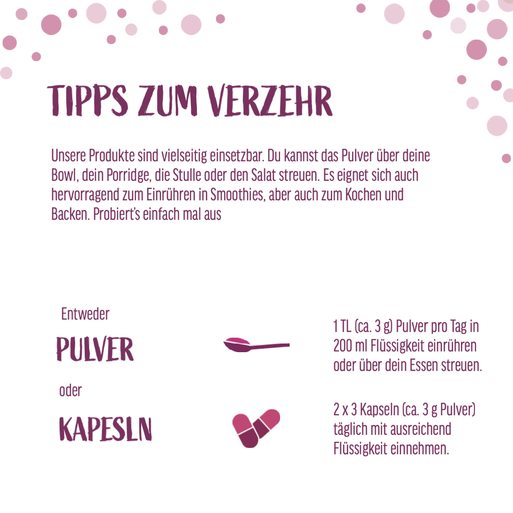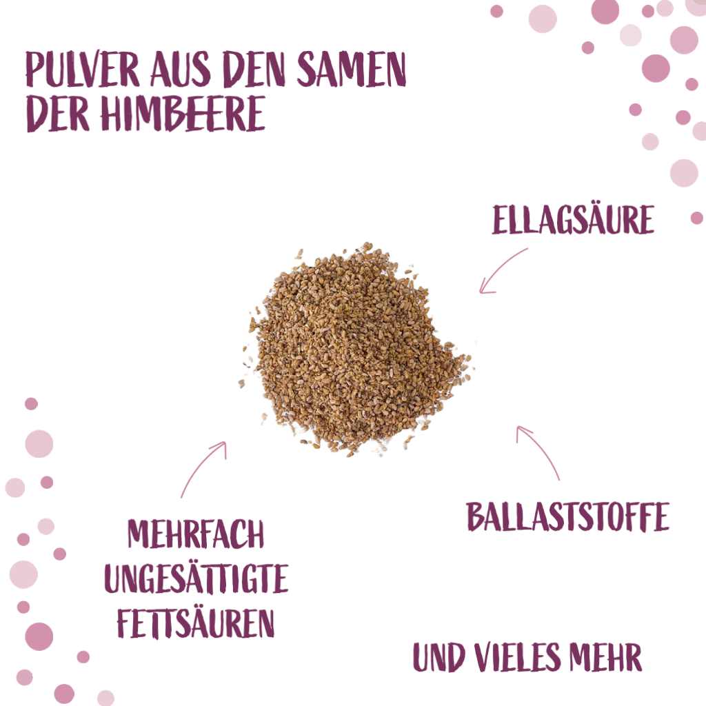 Raspberry nuts are the small seeds of the raspberry that give the fruit its wavy structure. Strictly speaking, the raspberry is not a berry, but a collective stone fruit. A single raspberry consists of many small stone fruits with their own seeds. This explains why raspberries contain so many seeds. And that's exactly what we want to get to! To do this, we separate the raspberry nuts from the pulp. The small seeds are then gently dried and ground.