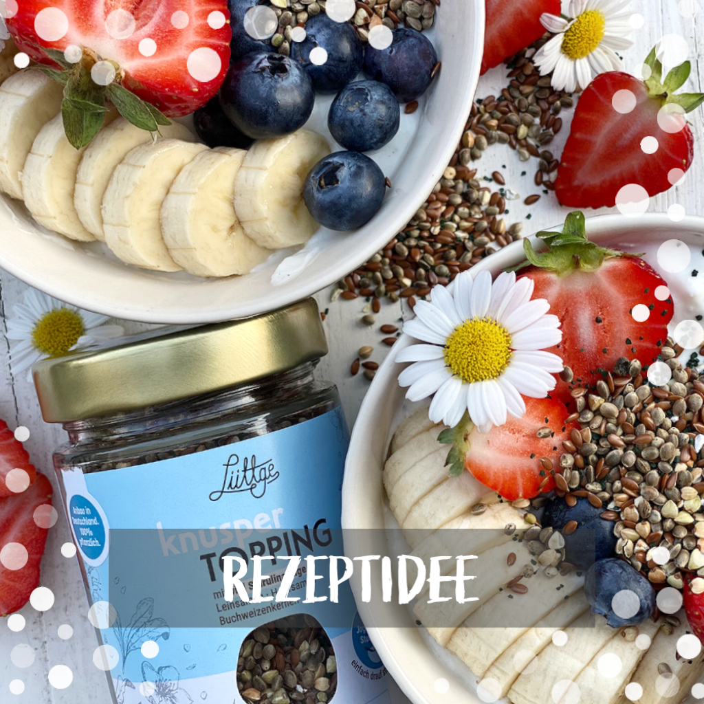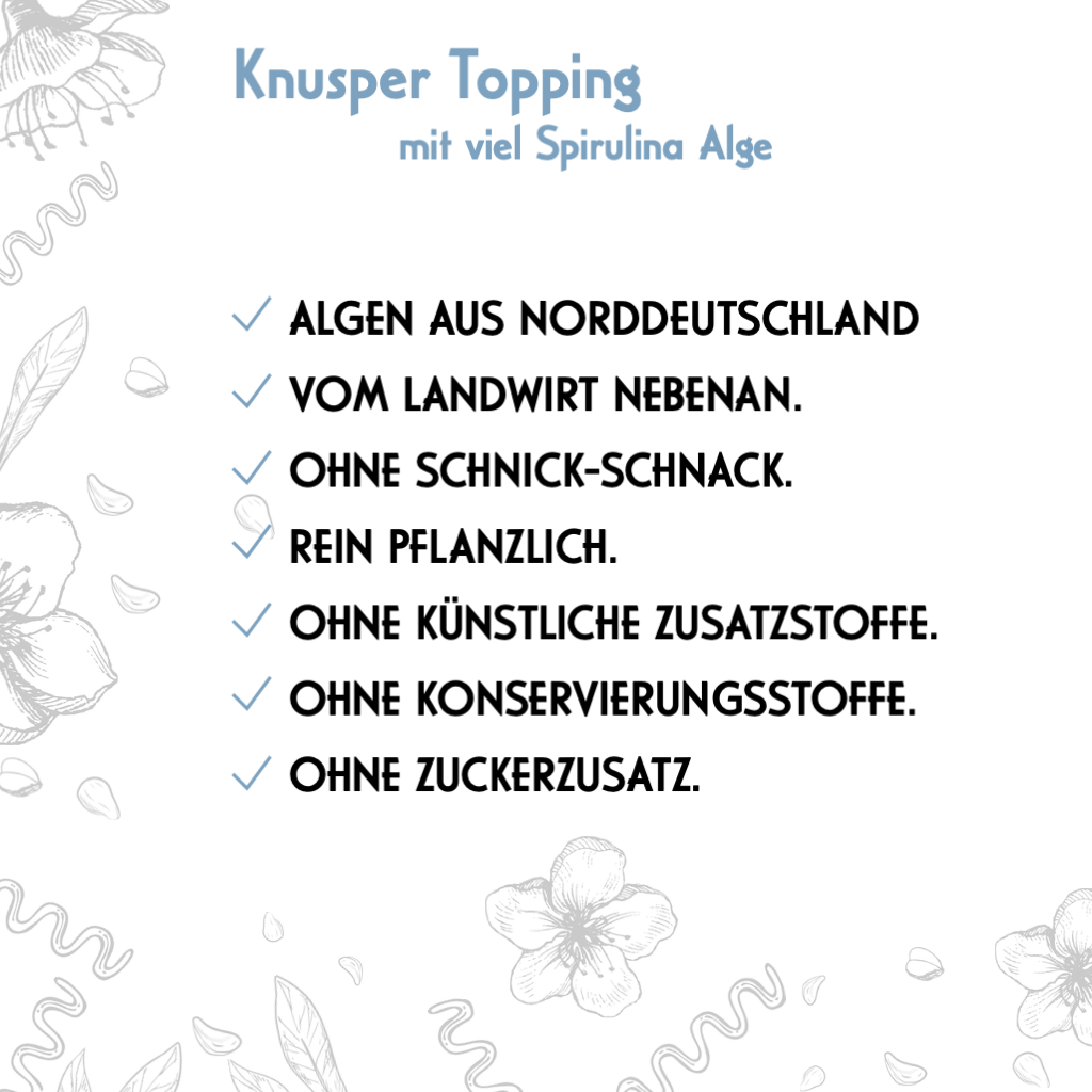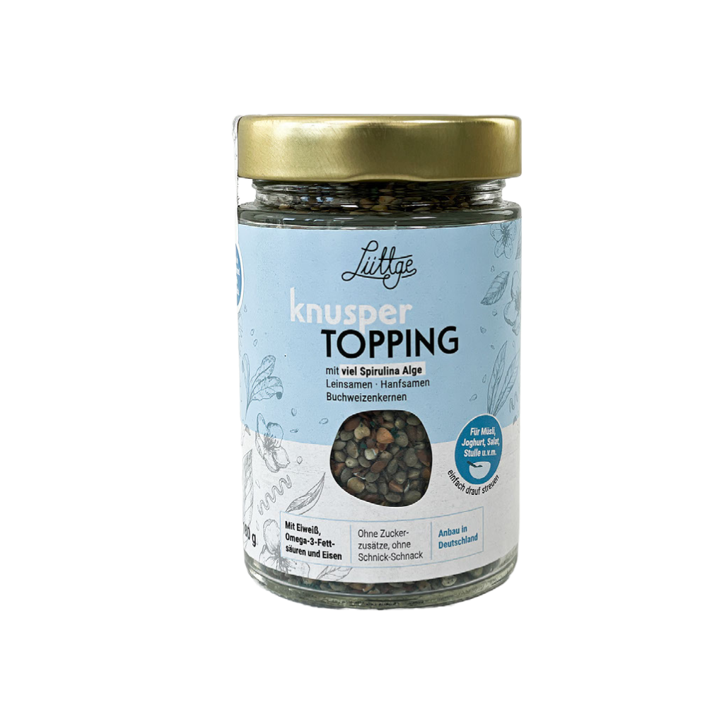 Lüttge crunchy topping with lots of spirulina algae in a glass