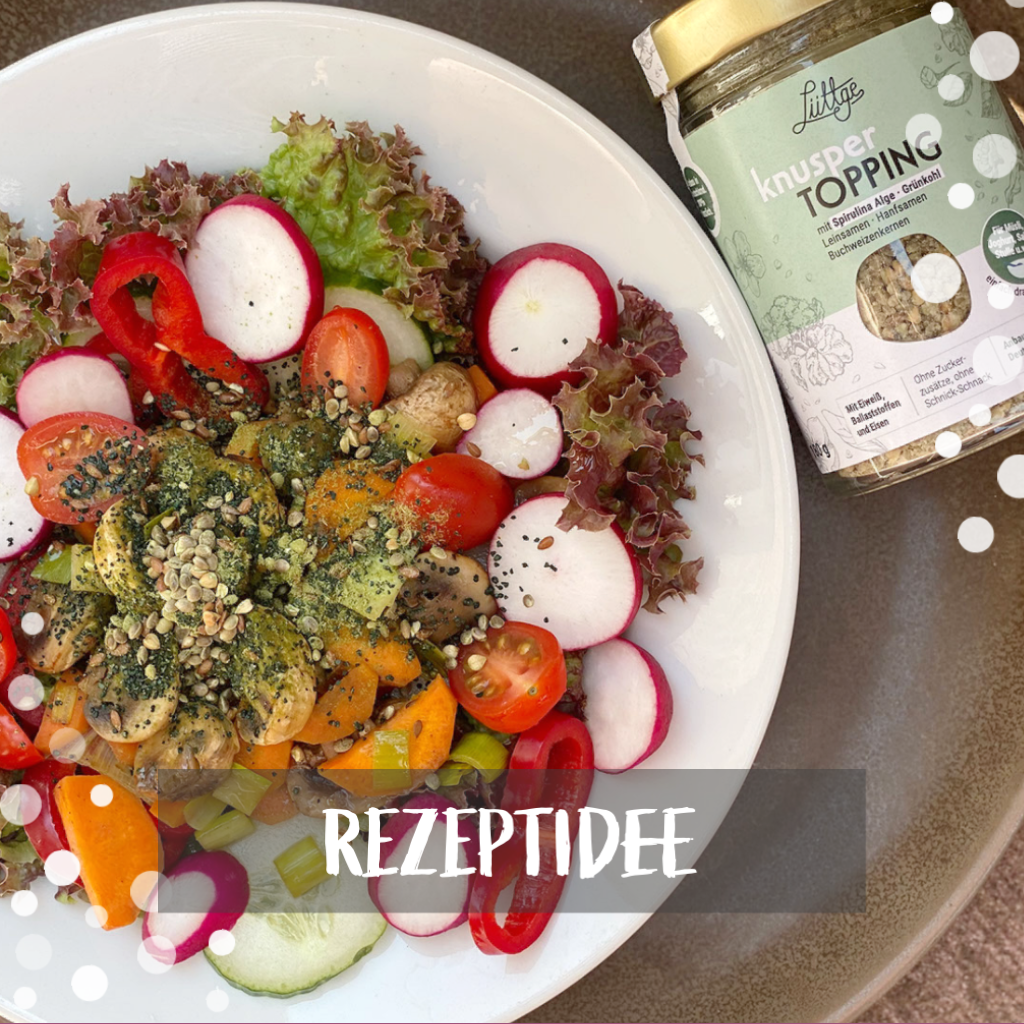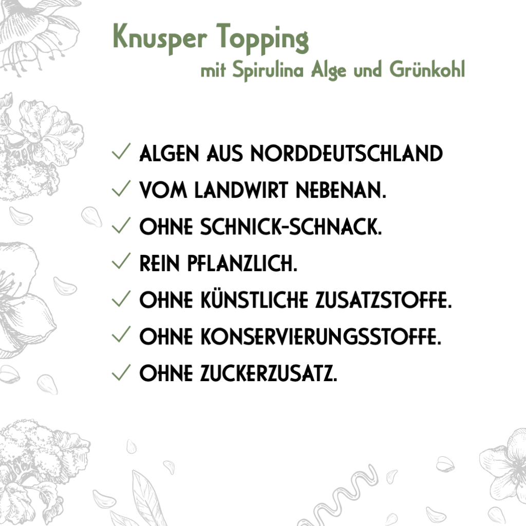Lüttge crunchy topping with spirulina algae and kale in a glass